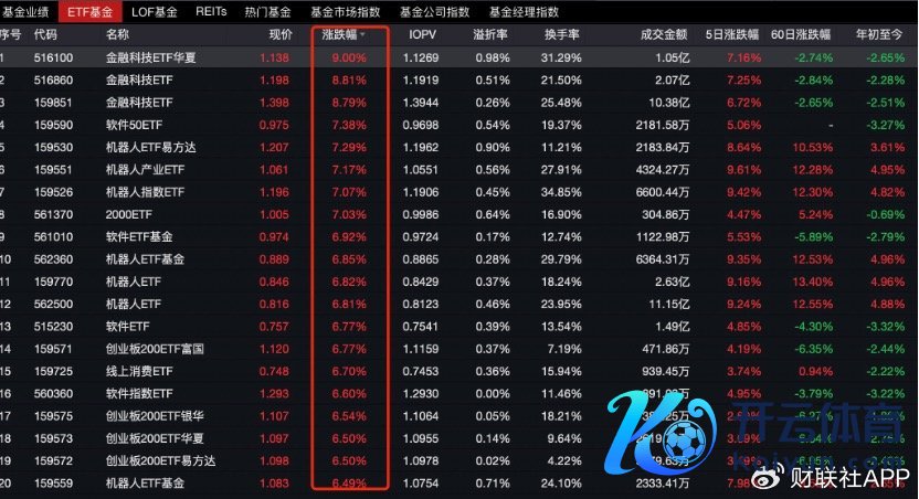 金融科技ETF大涨9%