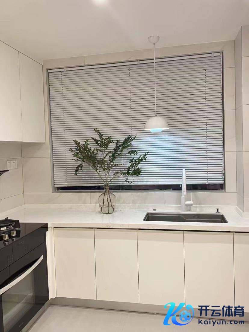 大窗户许多窗户都莫得,但窗户太大了,也有阳光太强的问题。挂一个苟简的百叶窗,不错随时疏通灯光,让厨房更适意。